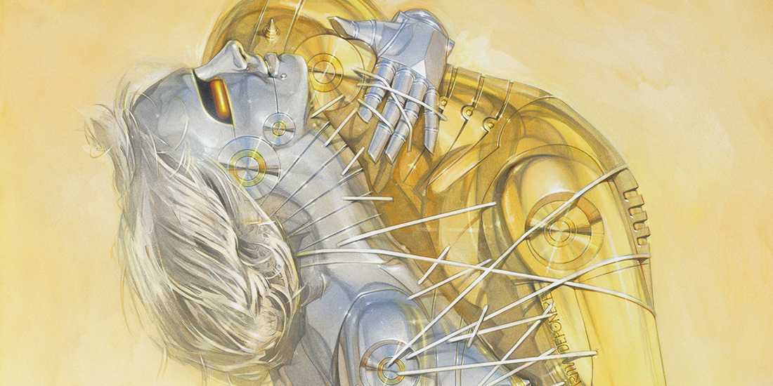 Long before AI girlfriends were sliding into your DMs and robot dolls started pouting on OnlyFans, Sorayama was airbrushing metal tits onto pin-up poses and hardwiring desire into circuitry. The exhibit, his first at the Museum of Sex, is a slick tribute to four decades of masturbatory mechanics. It all started in 1980 with a C-3PO-inspired commission for a Japanese whiskey company that wanted a “sexy robot.” What they got was the birth of a new fetish.